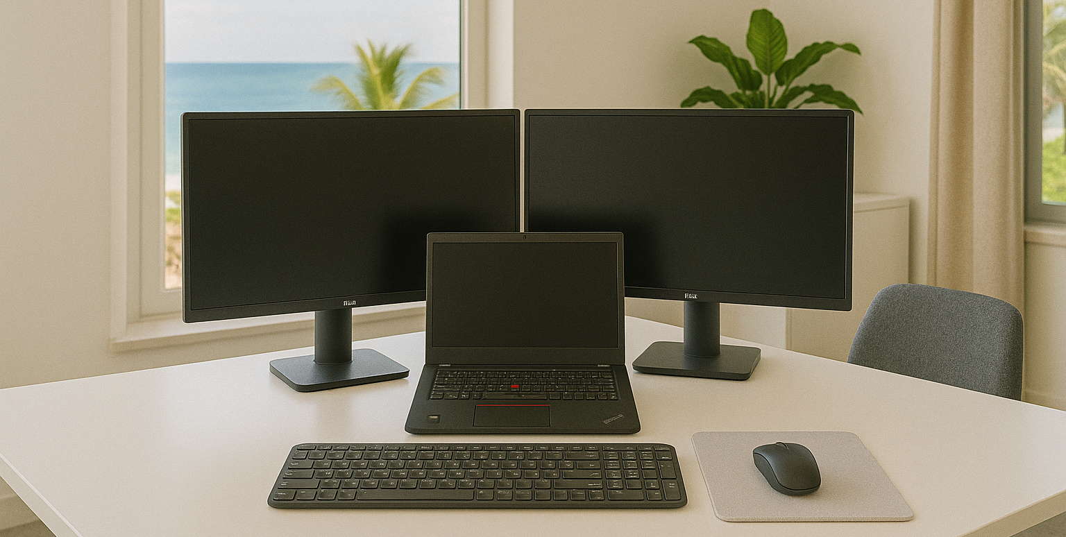 Unsere Setups sind für die geschäftliche Nutzung bestimmt und helfen Ihren Mitarbeitern effizient zu arbeiten, egal ob auf externen Projekten oder während der Workation!